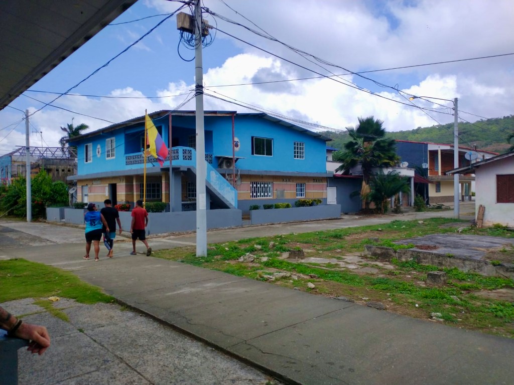 Eventually, we could see Port Obaldía, and everyone breathed a sigh of relief. The waves were choppier in the bay, and the conditions seemed rougher than when Oleta was there. This made us question if our idea of sailing back and trying a new method with the dinghy would have worked. Regardless of the answer, we needed to disembark on shore without flipping the boat. The kids backed the panga up, close enough to shore so we could carefully jump off in about two feet of water. We needed to move fast so the boat would not hit us and push into the rough surf. Even though dry ground was only a few feet away, making our way on the uneven, rocky bottom was challenging as the breakers tried to knock us off our feet. Miraculously, we arrived alive! The crew spent the next twenty minutes or so securing the boat offshore – in deeper water, where it rode up and down on the swell, preserving the structure from damage.