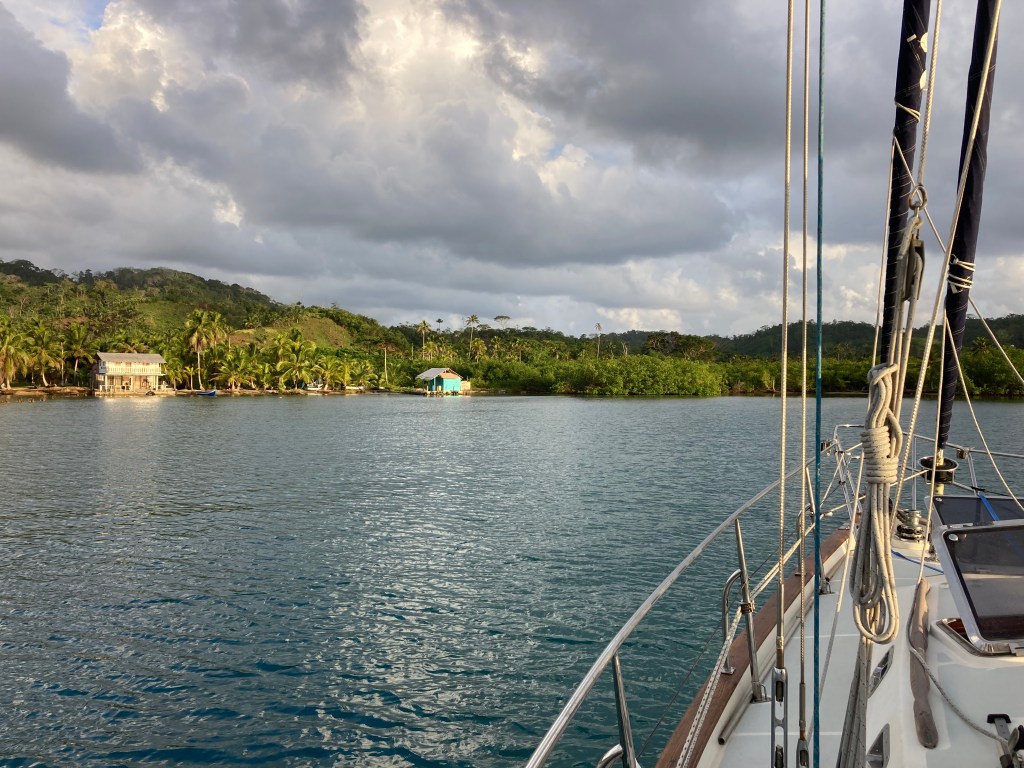 It was an upwind motor sail before we dropped the hook in the most serene anchorage ever: Permé, Panama. One of the small villages of indigenous tribes living in Panama and a few spots in Colombia of the Guna people. The sound of the birds and seeing lush palm trees and green mountains reminded us of our time in Trinidad. The bay was quiet and peaceful, surrounded by land and a protective reef.