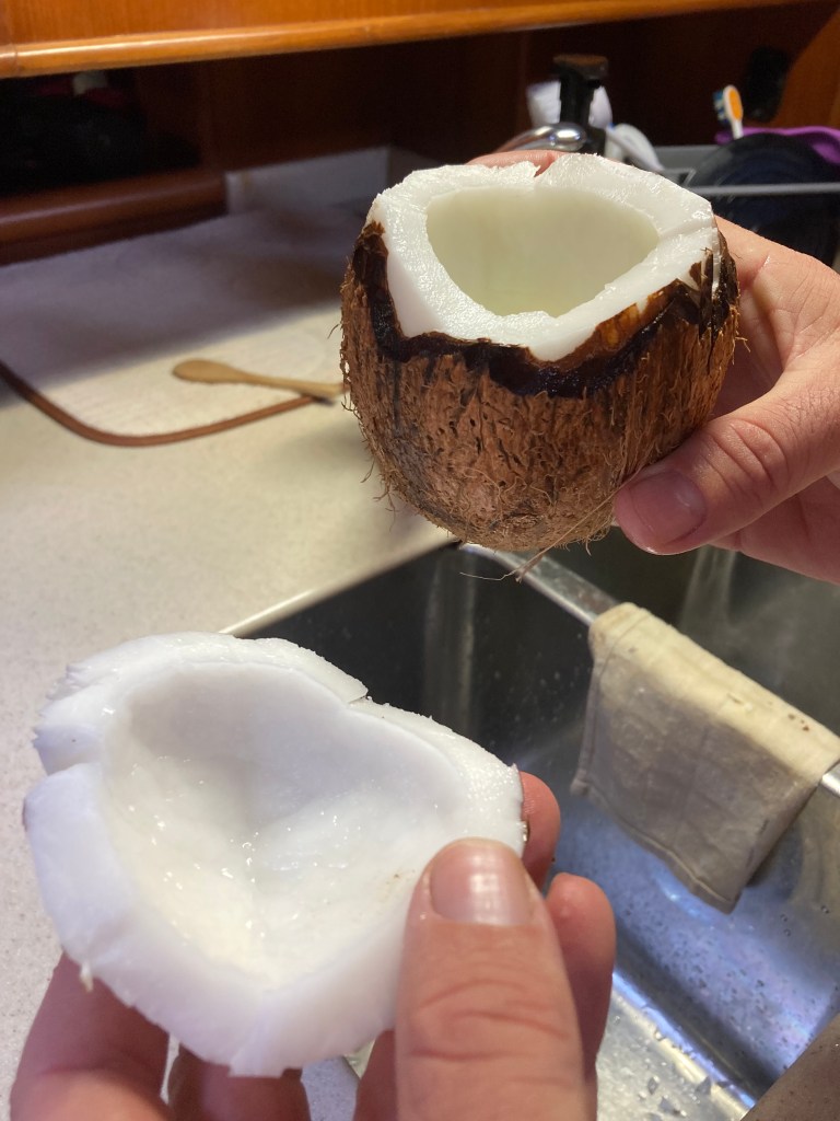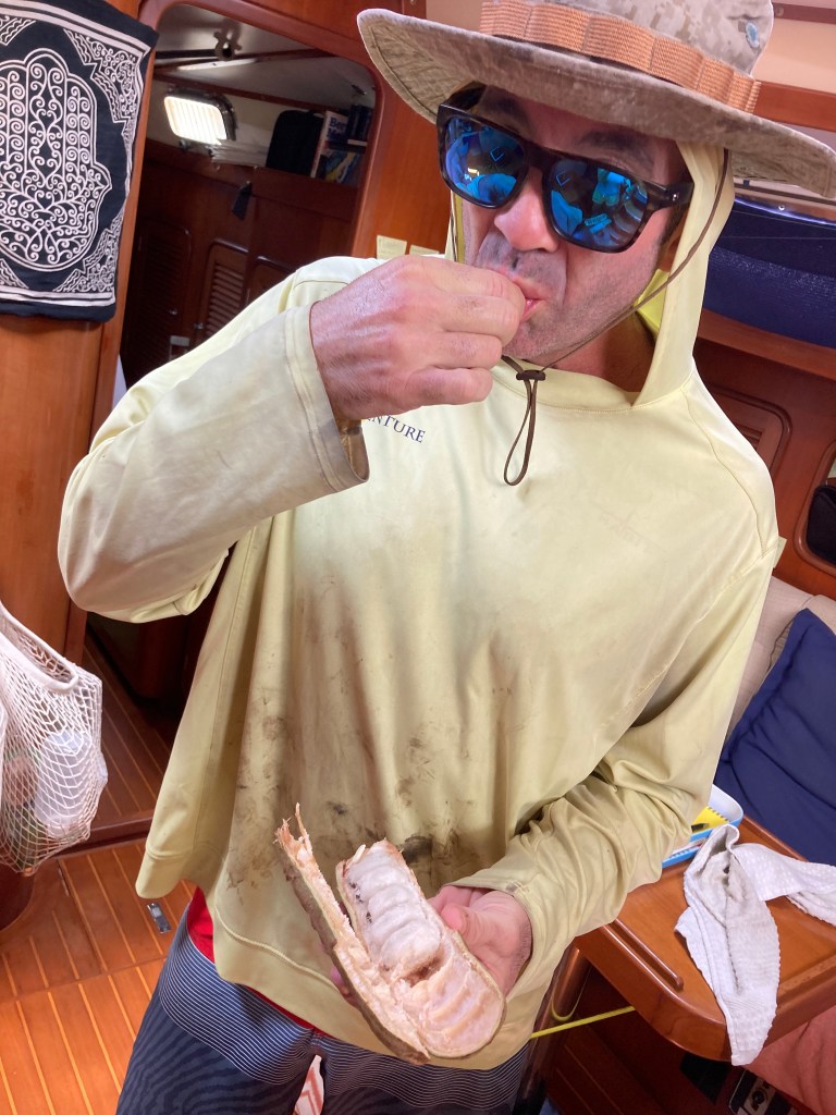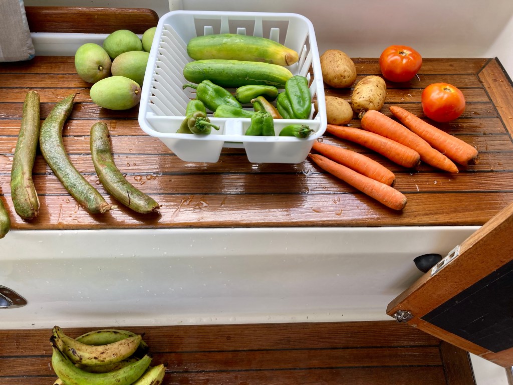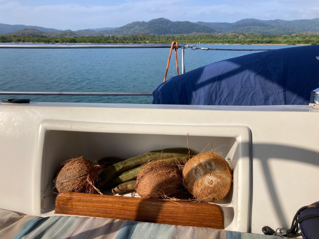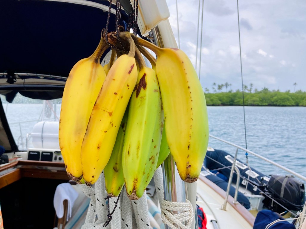 To track the list of provisions we need for remote anchorages or long passages, I use an excel sheet that documents all the foods we will need. Along with freezing, we use air-tight containers and a vacuum sealer to help keep our provisions fresh and bug-free. Back on land, I wasn’t an avid cook, but for some reason, out here on the ocean blue, I am trying new recipes and learning how to prepare exotic foods that come our way. From hacking open brown coconuts full of delicious meat, making hummus from scratch, learning to fry up tostones, to eating cinnamon-sweet gauba right from the pod, we are eating well!