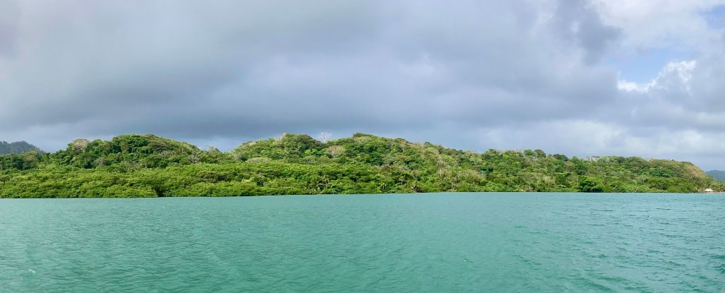 We departed the following morning for our next anchorage, which was sheltered by the mangroves, Puerto Escocés. After a two-tack sail, we furled the sails and prepared to motor through the bay to avoid the shallow spots. The charts for Panama are not as well documented as the Eastern Caribbean, so care must be taken to bypass the bombies. This is the “cruiser’s word” for coral heads at the water’s surface that may be hard to spot depending on light, weather, and the wave conditions.