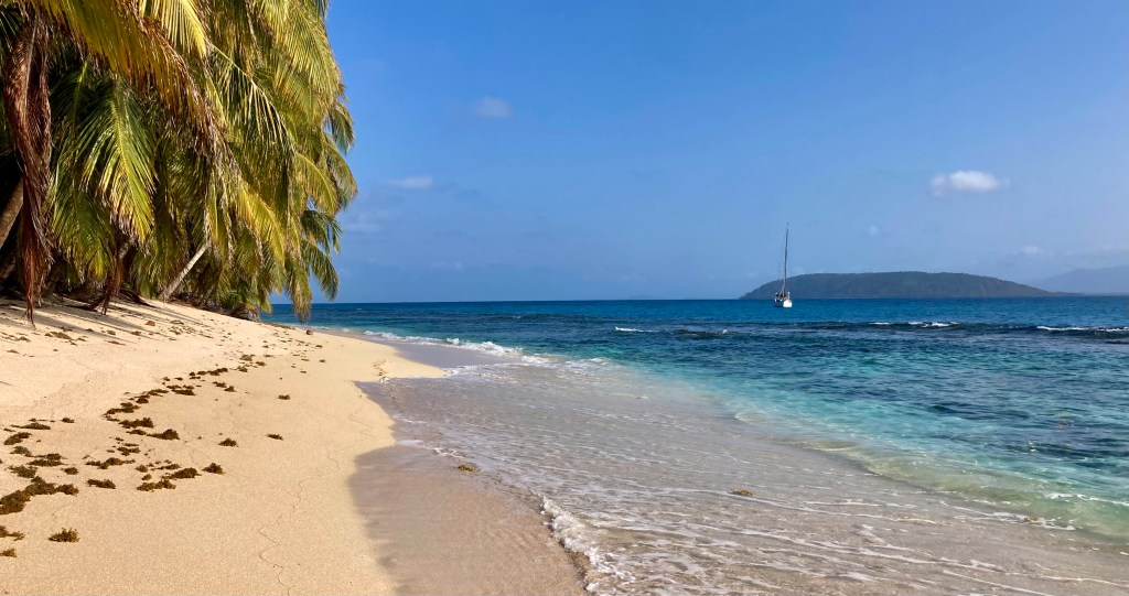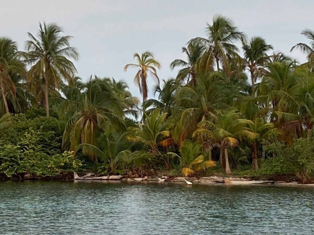 This was one of the first bays in a long time – maybe since the Bahamas, that was completely void of noises aside from the sounds of nature, a couple of barking dogs, and conversations between the Kuna as they fished near us. In the morning and evening, we could hear the howler monkeys in the distance. One day, I got lucky, and with binoculars, I saw two of them at the top of a barren tree, sitting with a few birds – amazing!