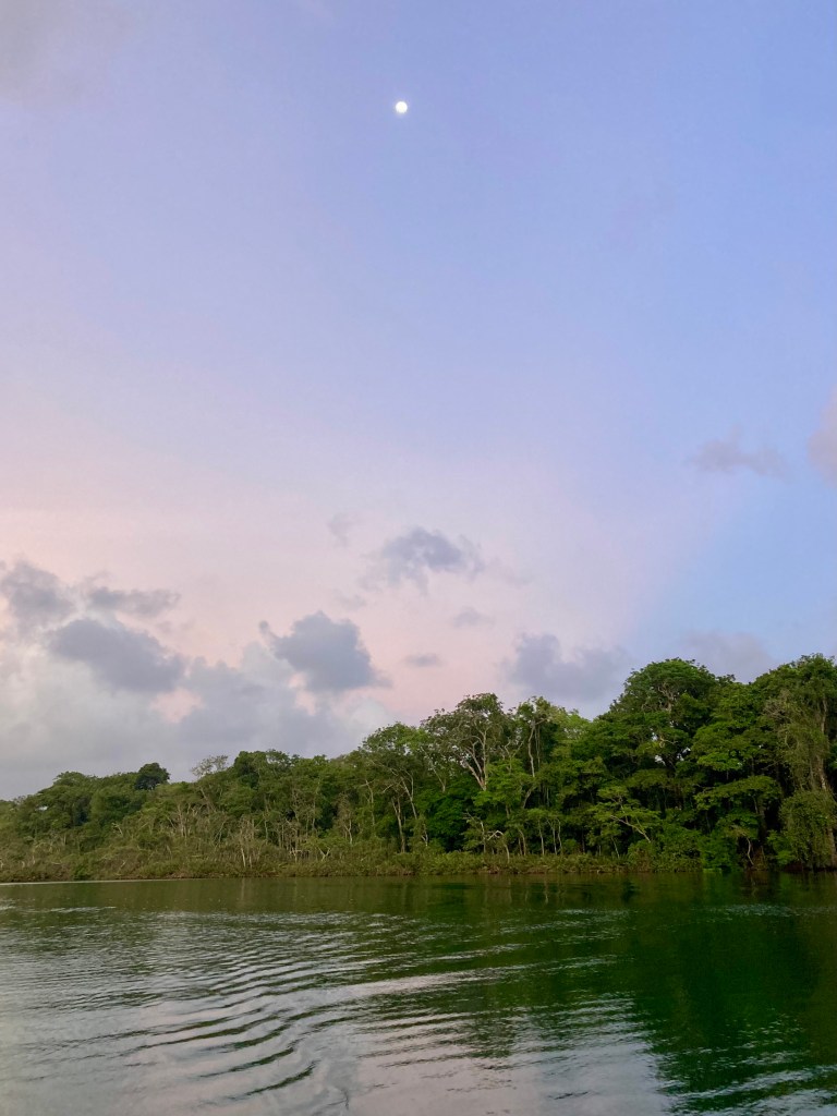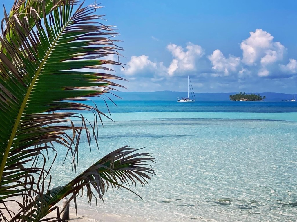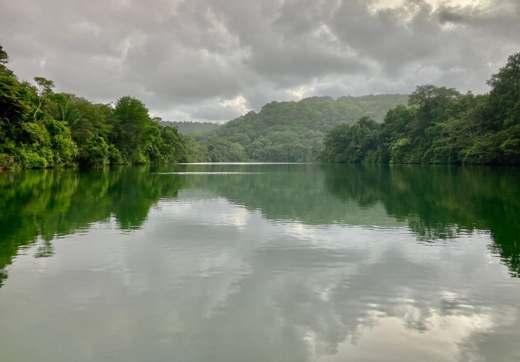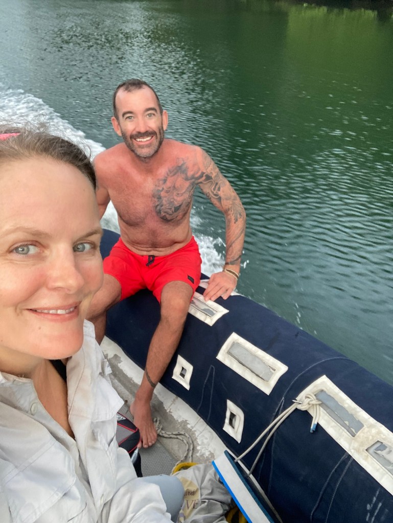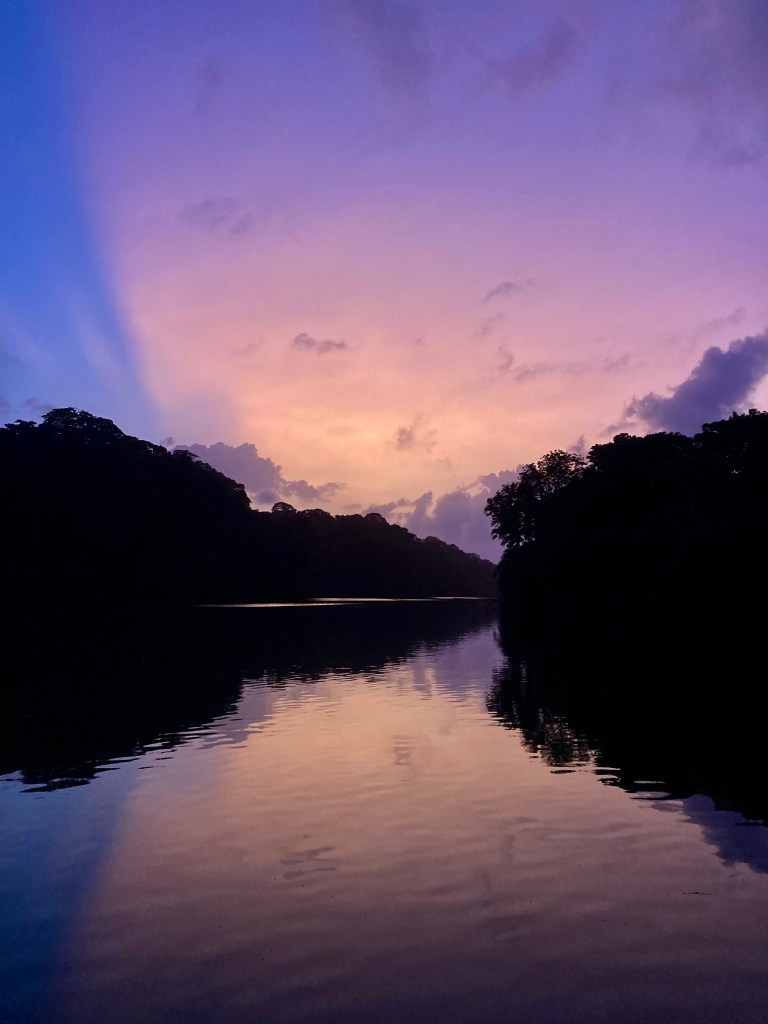 We spent seven nights and eight days on the river, enjoying the sounds of the jungle and the tranquil waters. We set up our big tent, and I would sit in the cockpit, listening to music and admiring the surroundings. It was super steamy with little breeze, so I almost always had a fan pointed at me! We took our dinghy, Turtle, to see the dam that created Lake Gatun, which is a part of the Panama Canal lock system. We also explored the small mangrove channels, keeping an eye out for crocodiles and howler monkeys while enjoying the bird calls. After our week stay, we were ready to move on to a place where we could go for a swim.