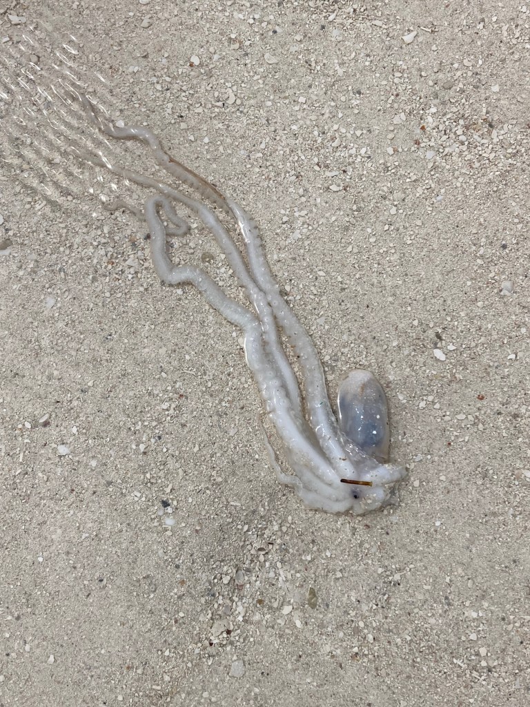 Like the day I swam from our boat to an island about two football fields away with no fins and only a mask. I mostly felt comfortable, yet aware I was also breathing heavily since long cardio sessions have been more challenging to get in. I noticed two large nurse sharks swimming only fifteen feet under me. I stopped to look at them, and I am always happy to see them, but I felt a bit exposed without fins on. I was still panting and realized I had some distance to cover to reach the shore. That is when one of the sharks started to swim up towards me. I faced it, tried to calm my breathing, and let it know I was just a silly human who needed to workout more. I can’t remember exactly how close she got, but when she turned and swam back down, I took a big breath and finished my swim to shore. It took me a long while to get the courage to swim back to the boat, but eventually, I did.