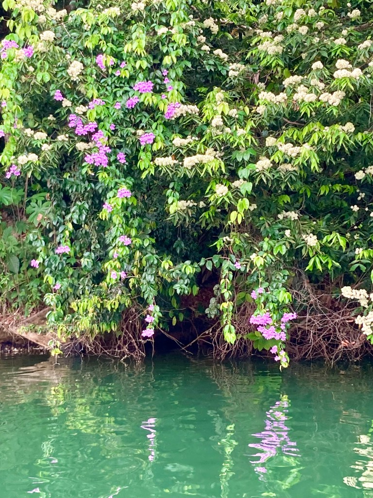 While we never saw a crocodile in the anchorages where we stayed, I was hesitant to snorkel alone since we had heard of recent attacks on the islands. One, a local dog was killed, and tragically, a little girl also perished after an attack. When we inquired about the crocodiles, we got different responses from cruisers and the locals. We never swam in the evening hours and were more aware when we were in the water. When I finally encountered my first crocodile in the wild—from the safety of Oleta in the Chagres River—I could feel its energy as it stayed low in the water with only its eyes visible at times. It was a magnificent moment to see this powerful creature in nature.