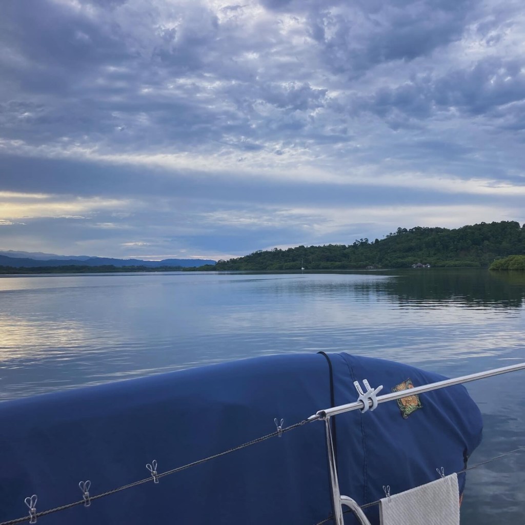 I gaze at the mesmerizing sky of bright blues and puffy clouds due to nearby tropical storms. Listening to music, my writing brain starts to flow, and in the note section of my phone, I try to capture the essence of the moment. The balance between sharing my writing and being present is an ongoing flow I am learning. I continue to lean into the unknown—daring to do, a nugget of wisdom I have found, and spiral along this spinning ball of blue and green on our floating home, currently in Bocas del Toro, Panama.